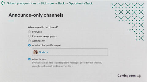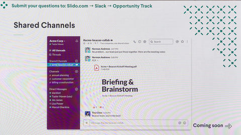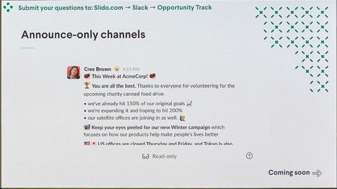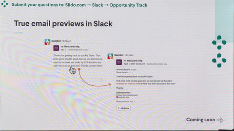 基調講演終了後にブレイクアウトセッション(基調講演などメインの講演のあとに行なわれる、より詳細な説明を行なう講演のこと)として行なわれた「Slack's product roadmap: What's coming soon」では、Slackが今後の展開を計画している新機能などについての解説が行なわれた。