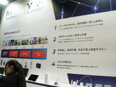 株式会社MAYAビジネスソリューションズのブースでは、クラウドSIM技術「Cloud SIMテクノロジー」を使ったソリューションを展示していた。国内外の複数キャリアのSIMを拠点に多数設置し、それをクラウド形式でPCやスマートフォンから利用するもの。これまでモバイルルーターなどのかたちでサービスが提供された。