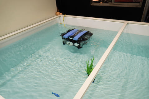 水槽では、このほか、水中の計測の実演なども実施。時間で区切って紹介している。