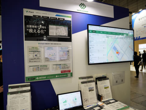 屋内測位関連としてはこのほかに、マルティスープ株式会社が産業向けの位置情報活用プラットフォーム「iField」を展示。同プラットフォームは工場や物流センター、建設現場などにおける位置情報を起点とした現場情報の集約・分析プラットフォームで、屋外だけでなく屋内にも対応する。屋内測位方式としてはBLE AoAにも対応しており、電波の角度をもとに従来よりも高精度な屋内測位が可能となる。