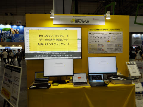 このほか、パーソナルデータの利活用の際に懸念されるリスクおよび対策を支援するサービスとして、株式会社プライバシーテックがアジャイル監査AIエージェント「GRoW-VA QuickCheck(グローバクイックチェック)」を展示した。同サービスは、企業がデータ活用やAI開発・導入において、企業のルールや経験値をもとに事業の炎上リスクをAIが自動評価するサービスで、面倒なチェックリストの記入や担当部門との煩雑なやり取りなどの手間を減らし、リスクチェックにかかる時間を大幅に削減できる。