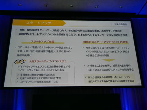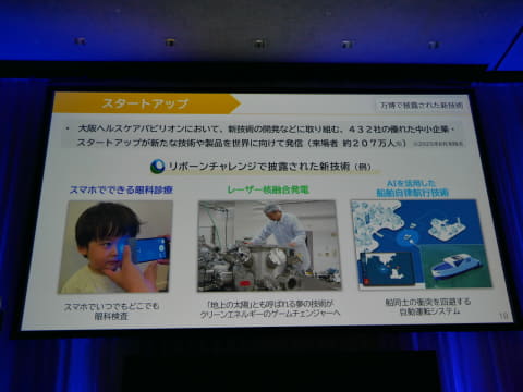 そして、「スタートアップ」では、大阪ヘルスケアパビリオンにおいて、スマホでできる眼科診療、レーザー核融合発電、AIを活用した船舶自律運航技術など、432社の中小企業やスタートアップ企業が新たな技術や製品を発信。「可能性を持ったスタートアップ企業が数多く参加した。これらは、日本を牽引するイノベーションになる。スタートアップのエコシステムを作り、これを支えていきたい」としたほか、万博の開催にあわせて、日本最大級のスタートアップイベント「Global Startup EXPO 2025」を開催し、今後も継続的に開催を続ける考えも示した。