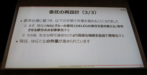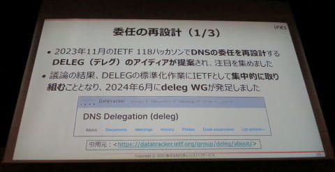 スライドの中で、一番気になるのが「委任の再設計」である。後述する最後のパートでもDELEG RRに言及されていたことから、この話題が持つ意味の大きさを考えざるをえない。