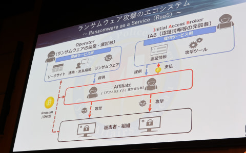 RaaSの種類は多い。2025年9月に発生した、アサヒグループホールディングスのインシデントは、RaaSの一種であるQilinによるものとされる。中川氏は「それぞれのRaaSは(実際に行動する)攻撃者を囲い込んで、行動させて、いかに分け前を得ようか腐心している。その過程で(競合する別の)RaaS間で争ったり協力したりもする」と説明。取り分を攻撃者とRaaSで7対3にするのか、8対2にするのか調整したり、時にはインセンティブを加えたりと、まるで一般企業間の取引のような関係が垣間見えるという。