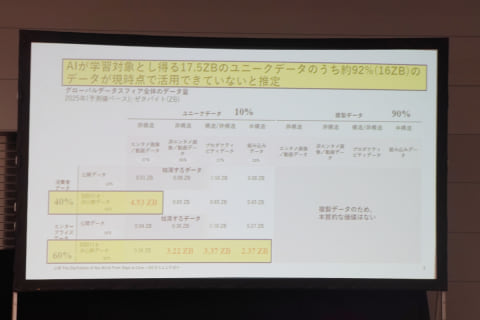 1つめは「まだ10%のデータしかAIは食べていない」。つまり、約90%のデータが企業の中や個人のPC・スマホの中に活用されずに残っていて、これらが新しい市場になる可能性があるという指摘だ。