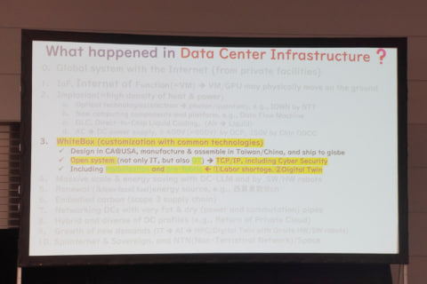 では、データセンターで何が起きているか? さまざまな論点の中から、いくつかを江崎氏は紹介した。
