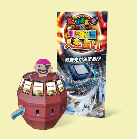 ぜひ、多くの学生の人たちに体験してほしいですね。新たに「黒ひげ危機一発」とのコラボ「半導体産業人生占い」も展開します。これに参加すると、ブースに出展している半導体企業を紹介した特製カードをプレゼントします。