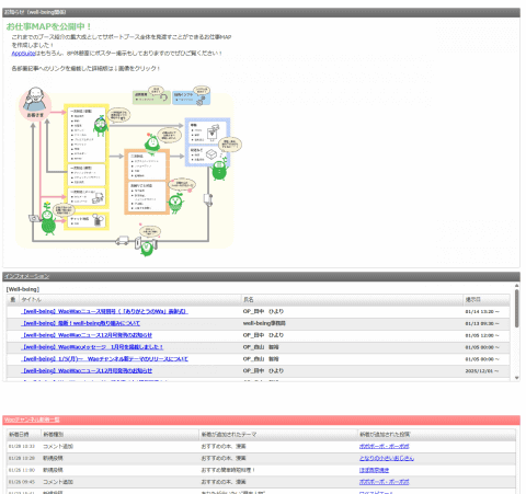 業務時間中にはしばしば「待ち」の時間も生じるが、そのような時間に、隣席の人と話すこともできない(応対中のオペレーターもおり、会話がユーザーに聞こえてしまう)。そこで、情報共有や雑談のために、コンタクトセンター内の掲示板システム「Waoチャンネル」が運営されている。