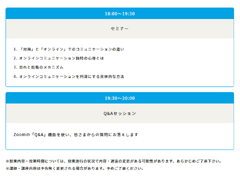 年間400件以上の面談カウンセリングを行う心理カウンセラー 浅野寿和氏が、ズーム疲れや孤独感の背景にある根本的な原因を、心理学の観点から解説。さらに、オンライン会議特有のコミュニケーション方法を具体的に伝授する。終盤のQ&Aセッションでは、参加者の疑問や悩みについて直接答える。