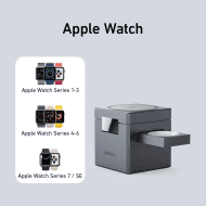 Anker製品として初めてMade For MagSafeを取得し、本体上面のマグネット式充電器はiPhoneを最大15Wでワイヤレス給電可能。本体側面ではApple Watch、背面ではAirPodsなどのQi対応ワイヤレスイヤホンに最大5Wの給電ができ、3台同時に充電できる。本体への給電は、付属する30WのUSB充電器とケーブルを使用する。