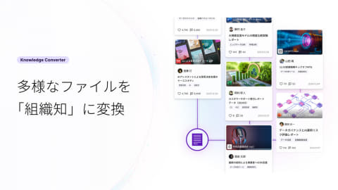 投稿したナレッジやファイルの内容をAIが自動で分析し、関連するナレッジをリンクさせて情報を分類することで、情報を構造化して管理できる。また、過去の資料や会議の議事録といったデータも登録でき、検索可能な組織知として蓄積が可能。