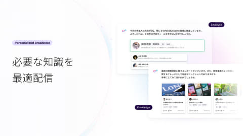 従業員のスキルや経験に加え、投稿したナレッジやコメントなどといったプラットフォーム上のデータをAIが分析し、各分野の専門家を特定する。個人の人脈に頼ることなく、最適な人材に質問やアドバイスを求めることができるため、情報収集の効率化や組織内の協働につながるとしている。