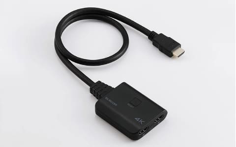 エレコム株式会社は、PCやゲーム機などからのHDMI信号を分配し、2台の異なるディスプレイへ同時出力ができる「ケーブル一体型HDMI分配器(VSP-HD4K120BK)」を発売した。市場想定価格は3680円。
