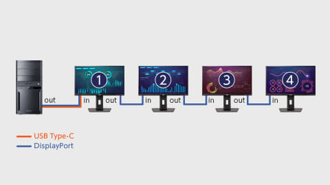 USB Type-CとDisplayPortを利用したデイジーチェーンに対応し、最大4台のマルチディスプレイ環境を構築できる。