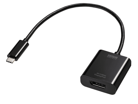 DisplayPort Alt Modeと映像出力に対応したUSB Type-Cポートを備える製品で利用可能。ケーブル長は20cm。映像出力は4K/120Hz(3840×2160)に対応し、HDCP2.2にも対応する。