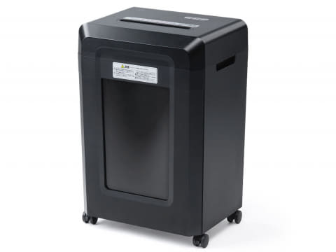 一度に細断できる枚数はA4用紙16枚分。ホッチキス留めの書類もそのまま処理でき、30分間連続運転でき、30L(A4用紙約320枚分)と大容量のダストボックスを備えており、大量の書類をまとめて裁断可能。ボックスはゴミ袋を掛けて使用でき、ゴミ捨てもスムーズにできる。