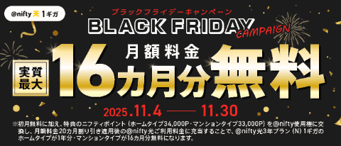 ニフティ、「@nifty光 3年プラン(N)」新規申込でポイントがもらえる「BLACK FRIDAYキャンペーン」を実施