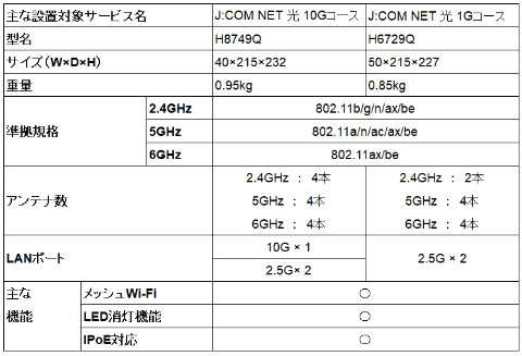 J:COM NETは、インターネット回線およびISPがセットになり、基本サービスにWi-Fiルーターの提供も含まれる。Wi-Fi 7対応のルーターが提供されるプランは、CATVで接続する「J:COM NET」の「1Gコース」と、光回線で接続する「J:COM NET 光」の「10Gコース」と「1Gコース」。