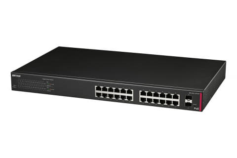BS-GS21Pシリーズは、全ポートがギガビット対応の24/16/8ポートスマートスイッチ。PoE+(IEEE 802.3at)にも対応し、合計最大180W/90Wの給電が可能。SFPポートを備えたモデルもある。