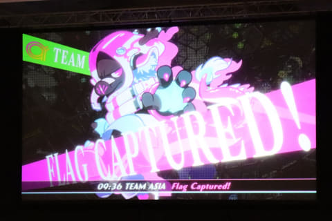 競技会場に設置されている観客用の画面では、各チームの攻防をキャラクターの動きや光で表現したものが表示されている。チームがフラグを取得した際には、全画面にキャラクターのカットインが表示され、どのチームがフラグを取得したのか分かるようになっている。
