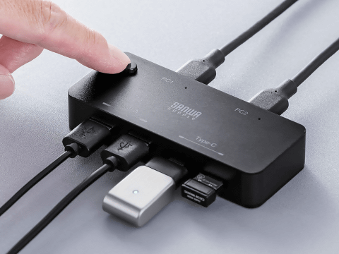 2台のPC間で最大4つの周辺機器を共有できるUSB Type-A/C両対応の切替器「400-SW041」、サンワサプライが発売