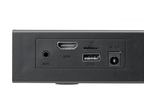 Bluetooth 5.3に対応するほか、HDMI(ARC)×1、3.5mmステレオミニプラグ×1の入力ポートを備える。microSDスロット×1、USB Type-Aポート×1も備え、USBメモリなどに保存した音楽を直接再生することも可能。