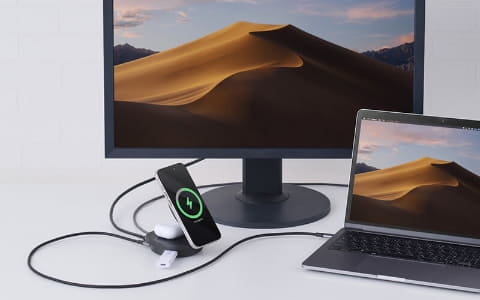 このほか、スタンド部と台座部でそれぞれワイヤレス充電が可能。スタンド部はQi2に対応し、対応端末の場合はマグネットで固定して最大15Wで充電できる。台座部はQiに対応し、最大5Wで充電できる。