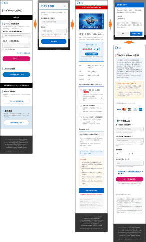 リンク先の偽サイトは、ローソンチケットのログイン画面を装ったもので、最初にローソンWEB会員としてログインを求められた後、チケット引き換えの手続きとして電話番号と引換コードの入力を求められる。以降、操作を続けていくと、クレジットカード情報の入力を求められる。