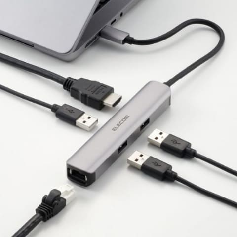 USB Type-C接続で、以下の5つのポートを拡張できる。データ伝送はUSB 5Gbps(USB 3.2 Gen 1)に対応する。