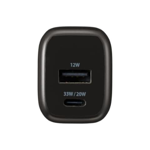 USB Type-CポートはUSB PD対応で最大33W、USB Type-Aポートは最大12W。2ポート同時使用時は合計最大32Wの出力が可能。接続機器を自動で見分けて最適な充電を行う「おまかせ充電」機能を搭載する。