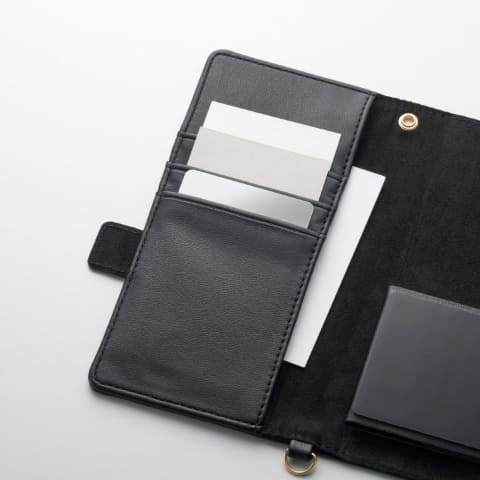 薄型タイプは、ICカード対応ポケットを1つ備えている。カードケースとハンドストラップ付きタイプは、4つのICカード対応ポケットとストラップを備える。