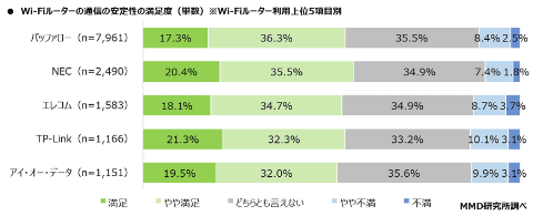 Wi-Fiルーターのシェアは「バッファロー」、総合満足度は「NEC」がトップに~MMD研究所調査
