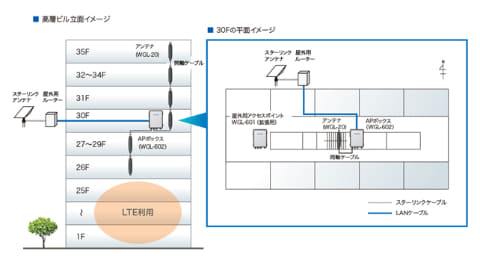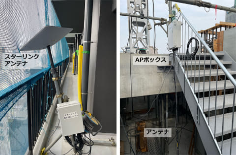 これまで、ビルの建設現場でStarlinkを使用する場合、屋上にアンテナを設置する運用が一般的だった。しかし、建物の骨組みとなる構造体を作る躯体工事が進むにつれて、アンテナを高い階に移設する必要があり、運用負荷が大きいことが課題になっていた。