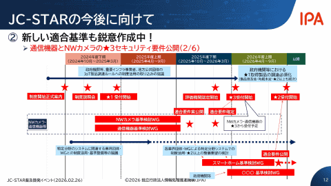 2026年2月6日には、通信機器とネットワークカメラのレベル3セキュリティ要件を公開。2026年秋にはレベル2の申請受付を開始する予定も明らかにしている。