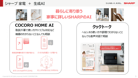 シャープは、独自のAIoT家電について説明。シャープ Smart Appliances & Solutions事業本部 本部長の永峯英行氏は、「これまでの家電は、購入時から機能が変わらずに、壊れるまで使うものだったが、AIoT家電では、長く使うほど、利用者にあわせて最適化できる。自分を理解してくれ、パートナーやコンシェルジュのような存在になる。インターネットを通じて、次々とサービスが追加される点も特徴である」とコメントした。