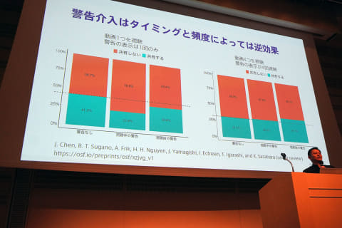 また、タイミングと頻度によっては、反発(バックファイア)を起こして逆効果となるリスクがある。実証として、動画1つを視聴し、1回デバンキングとして警告を行った場合には共有が減る効果が認められたが、4つの動画で4回連続で警告した場合には、共有が増加したという。拡散した情報がフェイクであると指摘されたが、意固地になって撤回を拒否してしまう、というSNS上のユーザー行動を見たことがある人は少なくないだろう。