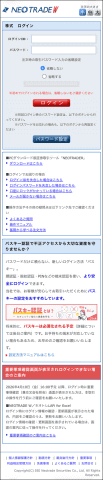 リンク先の偽サイトはSBIネオトレード証券のログインページを装っており、ログインIDとパスワードの入力を求められる。