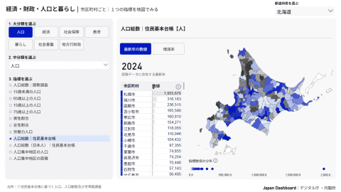 Japan Dashboardは、データに基づく政策立案をさらに推進するために、2025年7月に内閣府とデジタル庁、内閣官房デジタル行財政改革会議事務局により整備・公開された。従来「経済・財政・人口と暮らし(都道府県ごと)」「経済・財政・人口と暮らし(市区町村ごと)」「GDPの四半期別速報」「GDPの年次推計」のダッシュボードがあり、これに今回「地方財政(市町村ごと)」が加わったかたちとなる。