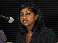 | ネットレイティングスで「BuzzMetrics」日本版を担当するアナリストの中村義哉氏 | Nielsen Companyプロダクトマネージャーのショーバナ・スリニワサン氏 |
