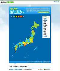 ニフティは4日、「Twitter」で花粉症の症状を投稿しているコメントを集めて、日本全国の花粉症マップを試作・提供する「みんなの花粉症なう!β」を公開した。