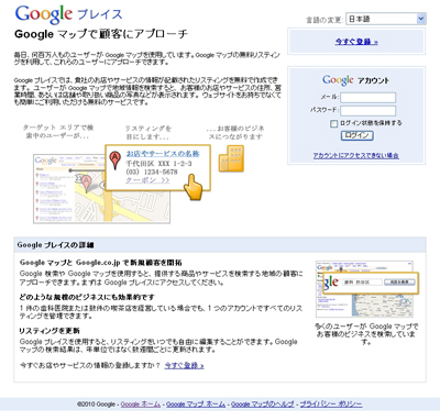 グーグルでは従来より、「プレイスページ」に登録する情報を店舗などのオーナー自身が編集できる機能「Google プレイス」(旧名称「ローカルビジネスセンター」)を提供していた。レストランのメニューや営業時間などの正確な情報を伝えられるほか、店舗の外観や内部、料理や商品の写真なども掲載できる。