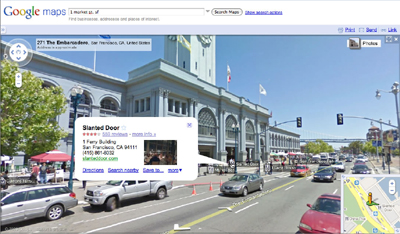 | 「ストリートビュー」での店舗情報表示例(Google LatLong公式ブログ2010年4月26日付記事より画像転載) |