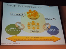 最後に挨拶に立ったミクシィ代表取締役社長の笠原健治氏は、「サーバーがつながっていたインターネットに対して、友人・知人がつながるソーシャルネットがさらに大きく拡大しており、地殻変動を引き起こしている。mixiはコミュニケーションのインフラになると考えて7年前に始めたが、その時にはここまで大きくなり、そしてこれほど多くの人と一緒に開発していくとは想像できなかった」とコメント。今後もさらにmixiのオープン化の流れをさらに進めていくと語った。