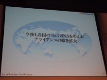 | 中国「Renren」と韓国「Cyworld」と、2国の最大手SNSと提携 | さらに各国のナンバーワンSNSを中心に提携を拡大していくと説明 |