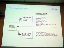 「ネット広告白書2010」によると、従業員300人未満で何らかの媒体に広告出稿実績がある企業のうち、検索連動型広告の利用率は12%にとどまるという。佐々木氏は、日本の中小企業にも検索連動型広告の重要性が認識され、ニーズが高まっている一方で、実際の利用にあたってはハードルもあると指摘。「Googleオープンビジネスパートナー」制度により、AdWordsの運用をアウトソースする方法もあるということを、中小企業の広告主に広く認知させていきたいとした。