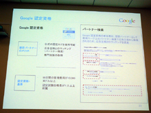 AdWordsのアウトソース業者のための制度としては、グーグルはすでに5月より、広告代理店やSEM事業者など向けに「Google認定資格」による認定パートナー制度を提供している。試験に合格し、運用実績があれば認定されるもので、公式の認定ロゴを使用できるほか、広告主向けのパートナー検索の対象となり、広告主とのマッチングが促進されるメリットがあるという。