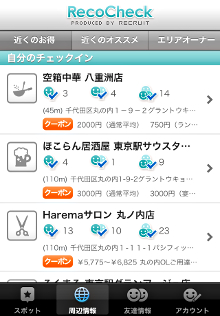 リクルート、位置情報アプリ「RecoCheck」に5万5000件のクーポン表示