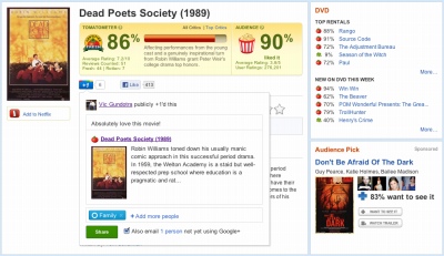 | 「+1」ボタンをクリックすると表示されるポップアップの例(Google公式ブログより画像転載) |