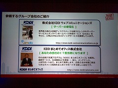 田中氏は「KDDIグループには、2つの中小企業向け事業を手掛ける子会社がある。ひとつは『Jimdo』を提供するKDDIウェブコミュニケーションズで、もうひとつが『まとめてオフィス』という、オフィスIT化支援サービスを提供するKDDIまとめてオフィス株式会社」と紹介。まとめてオフィスは、「みんなのビジネスオンライン」サービス運営に直接的に関わるわけではないが、利用企業を支援していくという。