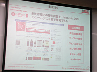 利用を申し込んだ店舗に対して楽天は、Facebookページやmixiページの制作を代行。店舗が楽天市場の自社ページに登録した商品を、自動的にFacebookページやmixiページにも陳列する機能も提供する。